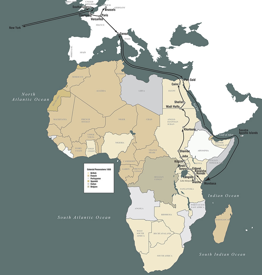 Mort Fuller, Jr., as a boy growing up at Overlook, had developed a keen interest in nature. He trapped and mounted numerous specimens he found in the meadows and forests on his parents’ estate. In 1930, at age 23, Mort headed an African safari, joined by his friend Jacob R. Schlager and Dr. Jonathan M. Wainwright, a prominent cancer surgeon of Scranton who later became head of The American Cancer Society. They engaged Thomas Cook, Ltd., to organize and assist in their safari. During nine weeks of travel, the men camped, hunted, wrestled their vehicles out of mud holes, and made a memorable descent of the Nile River. Fuller, an avid cameraman, recorded many of their adventures. His movie footage is preserved at the Smithsonian Institution.
